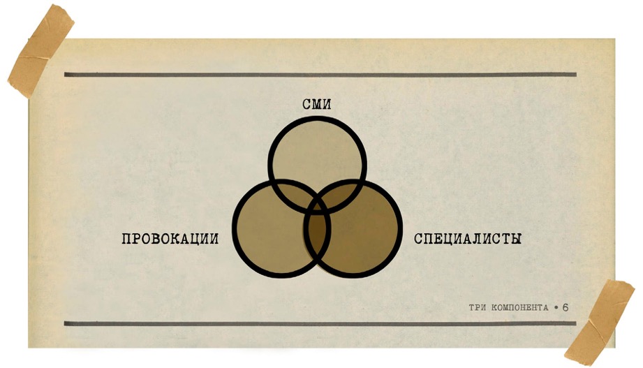 Итого, получаем три компонента. Чтобы обеспечить тленное безвозвратное разрешение обороны, потребуются следующие рычаги: провокации, которые развязывают руки; СМИ, которые словно чайки разнесут вести по Америке; специалисты по дискредитации людей.