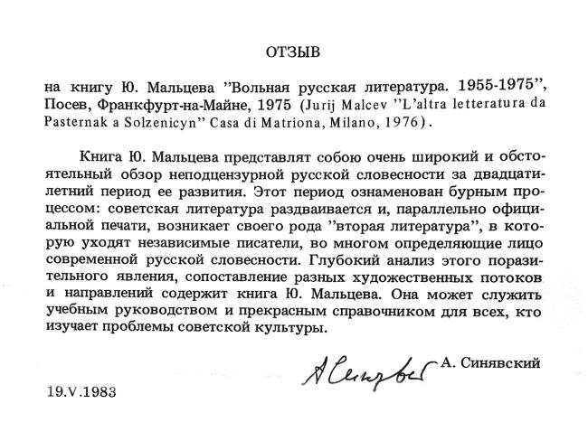 В еще более глубокие заблуждения при оценке сегодняшней русской литературы впадают те, кто принимают за подлинную критику режима появляющиеся в официальной печати не совсем ортодоксальные произведения. В работах этих исследователей, посвященных советской литературе, можно найти глубокомысленные исследования сочинений Е. Евтушенко,