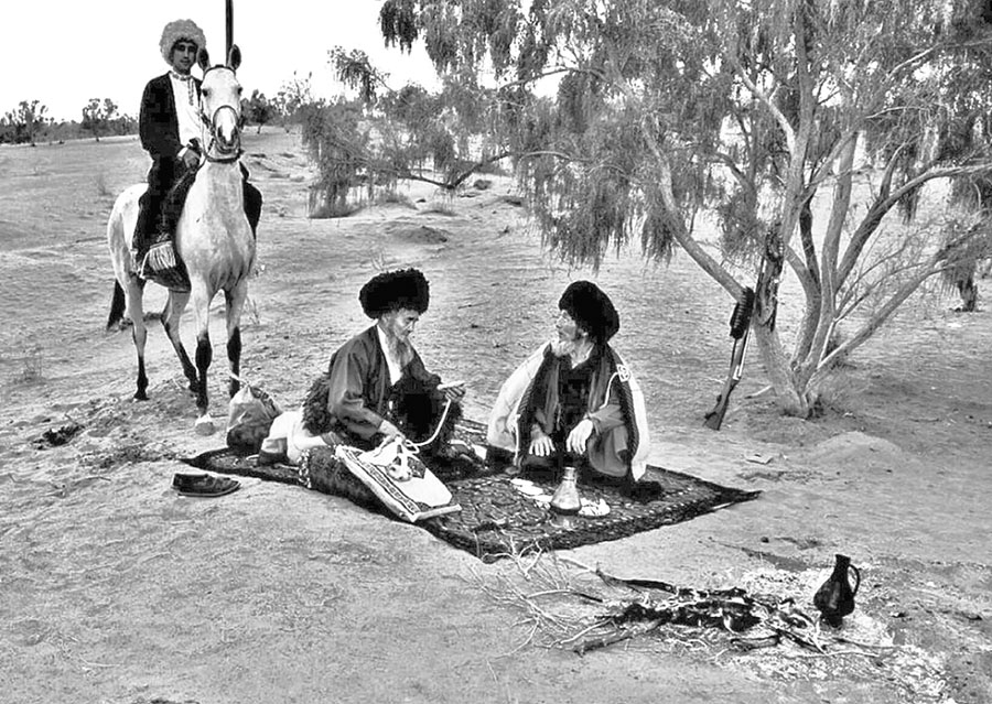 Прикладывая на восточный манер правую ладонь к сердцу, мы приветливо поздоровались с почтенными белобородыми аксакалами, а затем мужчинами помоложе, принимая из их гостеприимных рук пиалы с кристально чистой ледяной водой. В глаза невольно бросились рыжие и блондинистые туркмены. Да и среди окружавшей нас детворы рыжих «светлячков» было более чем предостаточно. «Чудеса генетики или последствия набегов завоевателей?» – задумались мы.
