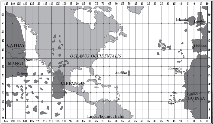Карта Тосканелли 1474 г., наложенная на современную карту