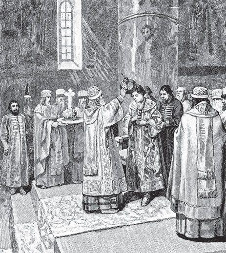 «Венчание и принятие царского титула Иоанном IV» (гравюра с картины К. Лебедева)