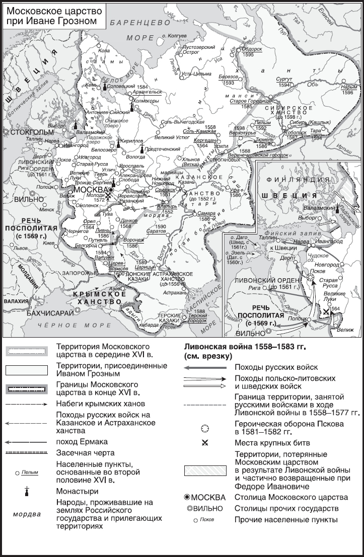 Поводом к началу войны 1558 года стала невыплата ливонцами дани за город Юрьев (Дерпт), которую они платили Пскову еще в XV веке, а Москве платить перестали. Русские войска победоносно прошли всю Ливонию, разбили орденскую армию и овладели Дерптом, а также важнейшим портом Нарвой. Магистр ордена был взят в плен, победа была близка. Но новый магистр обратился за помощью к польско-литовскому государству. Оно вступило в войну, что поначалу не остановило русскую армию, и в 1563 году Иван IV лично руководил взятием Полоцка, важнейшего опорного пункта Литвы. Однако на этом победы закончились. Война затягивалась. В борьбу за ливонское наследство включилась Швеция. Россия теперь воевала с международной коалицией, силы которой значительно превосходили ее собственные.