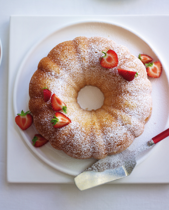 This is a very light, subtle cake that doesn’t use butter or oil. Instead, it includes plenty of egg whites to give it volume, so make sure to whisk them enough that they form soft peaks. Serve with berries or fruit compôte.