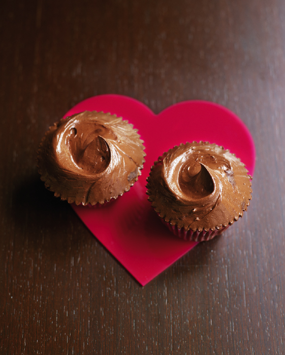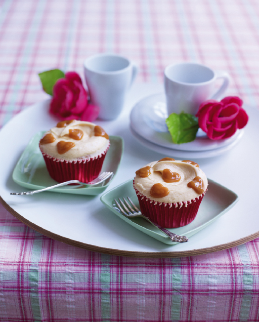 6. Spoon the frosting on to the cupcakes once they have cooled, smoothing it on with a palette knife and swirling the frosting. If you want to decorate the cakes, spoon some tinned caramel or dulce de leche into a piping bag with a small nozzle and pipe on to the cakes in little hearts, or whatever shape takes your fancy.