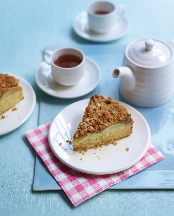 Imagine a moist apple cake … with apple crumble on top. Serve this with whipped cream, ice cream or custard.