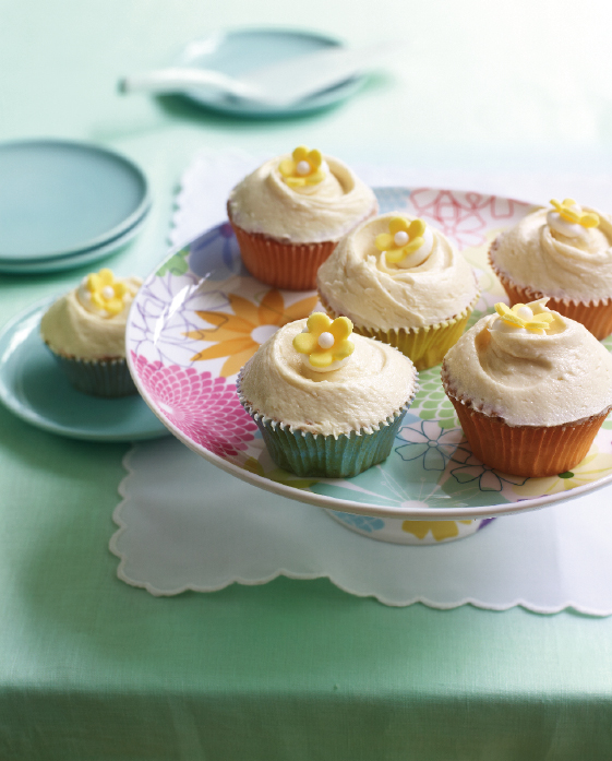Orange blossom cupcakes: Make as for apple blossom cupcakes, replacing the apple tea powder in the sponge with 1 tablespoon of orange blossom water and in the frosting with 3 teaspoons of orange blossom water. For the sponge, mix the tablespoon of orange blossom water with the milk in a jug, add the eggs and whisk together before adding to the dry ingredients as in step 3. For the frosting, first mix the orange blossom water with the milk and then mix with the butter and icing sugar.