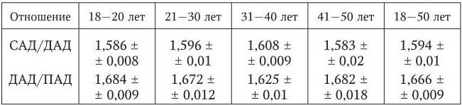 Отношения САД/ДАД и ДАД/ПАД у здоровых лиц в зависимости от возраста
