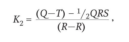 где QRS – желудочковый комплекс, остальные обозначения те же, что и в предыдущей формуле.