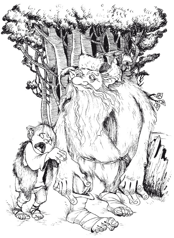 Климушка узнал это в десять обхватов старое дерево, быстро сбросил мешок, прицепил к ногам кошки и поднялся к дуплу, на высоту конька крыши деревенской избы и, не раздумывая, сунул руку в глубокое дупло. Оно уходило далеко вглубь дерева. И тут боль пронзила запястье: кто-то впился в него зубами и когтями сразу. Кузнец резко выдернул руку и с трудом вытащил наружу что-то похожее на мохнатого ребёнка. Но даже в темноте Клим различил: существо – зелёного цвета, пахнет мхом и необычайно мохнатое. Оно вцепилось в его руку зубами и острыми когтями.