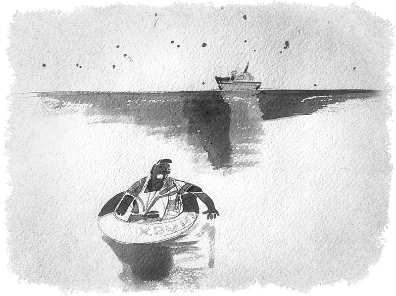 Оказавшись в воде, наш герой сначала кричал, а затем молча и долго смотрел вслед удаляющемуся кораблю, пока тот совсем не исчез. Сгоряча Иван попытался, ухватившись за круг, куда-то плыть, однако вскоре понял бесполезность этой затеи.