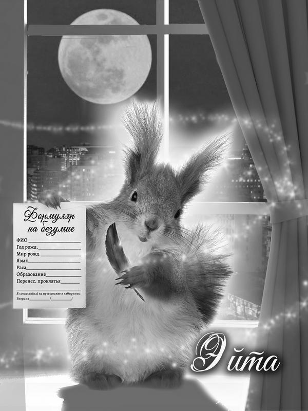 На подоконнике сидела белка с бланком в одной лапе и пером, которое, судя по всему, играло роль шариковой ручки, в другой. Чудненько… Мне приветственно помахала рукой белая горячка. Только ее мне и не хватало. Ага.