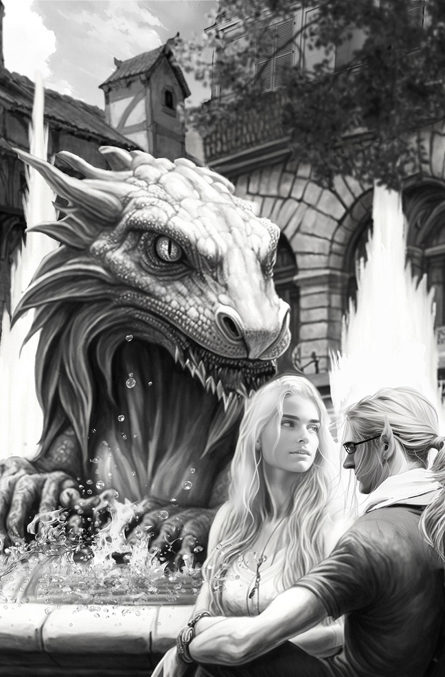 Меня посадили на каменный край чаши фонтана, в которой лазурью переливалась вода, играя бликами на солнце. А по кругу у самого подножия статуи крылатого ящера плясали языки пламени. Красиво, величественно и, на мой взгляд, слишком монументально. Да и места сам фонтан занимал изрядно. И это еще дракон был изображен не в полный рост, а полулежащим на лапах.