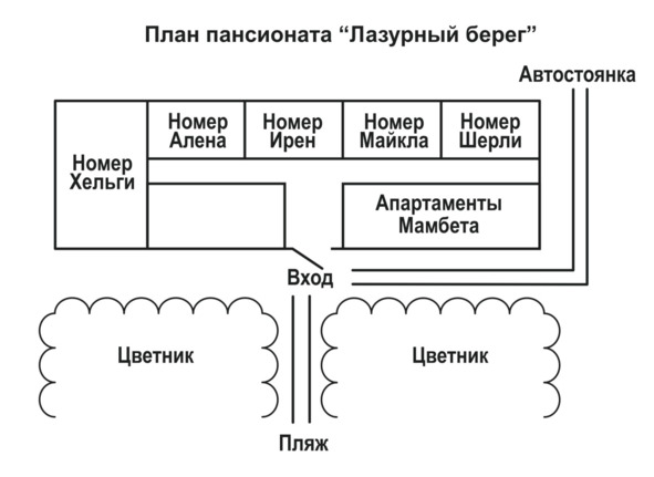 Шерли пообедала в номере. Она устала после перелета и чувствовала потребность побыть в одиночестве. Отдохнув и почувствовав себя бодрее, Шерли покинула номер, намереваясь обследовать территорию пансионата. Непривычно яркий для сентября солнечный свет заставил ее зажмуриться и снова надеть очки. Дорожка, выложенная камнем, вела мимо цветника в сторону манящей лазурной глади. Уже слышался шум набегающих волн, и Шерли в нетерпении ускорила шаг. Перед ней открылся белоснежный песчаный пляж с белыми зонтиками шезлонгов и негромкой музыкой.