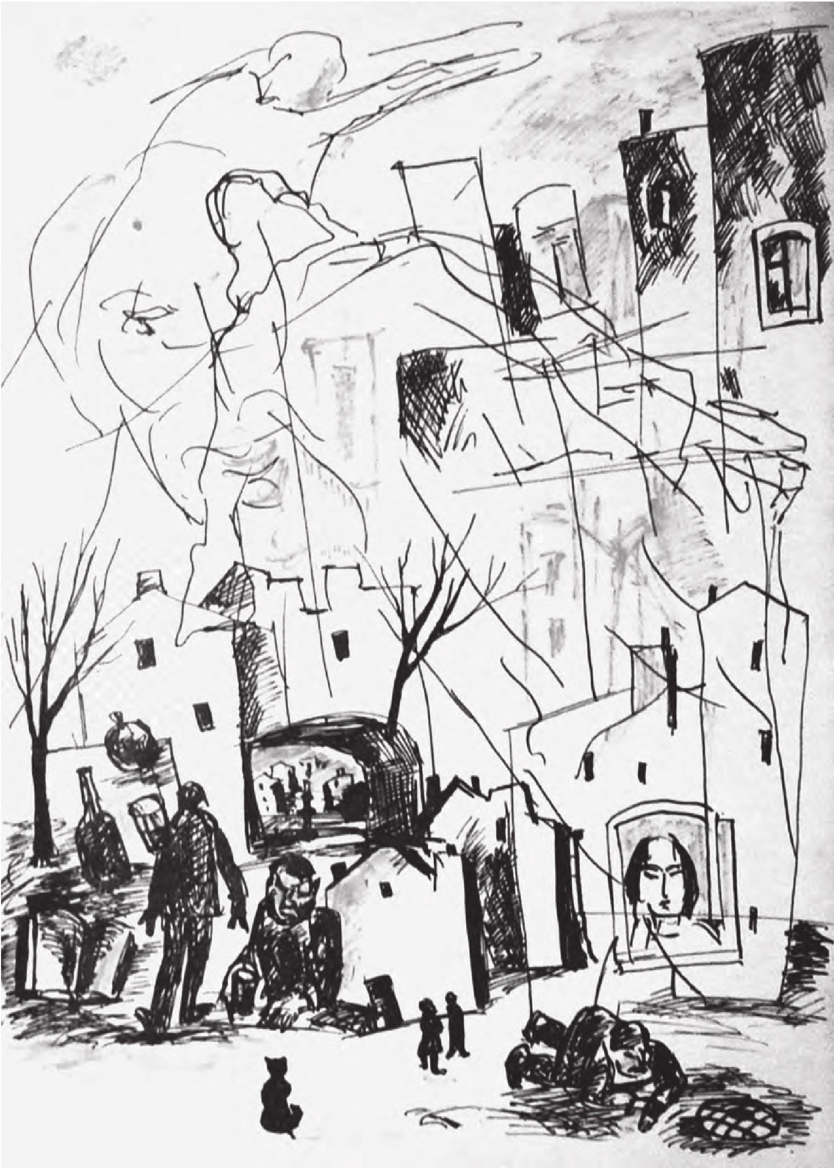 Не было ни снов, ни кошмаров, исходящих из плоти, ни тупого ощущения смерти, которой нет, ни страха, выворачивающего внутренности. Просто Григорий знал: надвигается ужас. Якобы все оставалось на месте: дома-коробки, равнодушные к своему существованию; солнце в пустом небе; трамваи. Но в мире появилось нечто, имеющее отношение только к Григорию. Поэтому остальные ничего не замечали. Оно было скрыто, но казалось, все вещи в миру, даже сам воздух, были лишь его оболочкой (или завесой?!). Да и то, главное, было не в этом. Главное стало в сжимающейся душе Григория… Но почему она сжималась?! Может быть, что-нибудь неизвестное входило в нее и она опустошалась?! Но зато многое выражалось в его глазах. Они, сами по себе маленькие, выкатывались, и на их поверхности соединялись такие слезы, водяные тени и испуг, что и сумасшедшие могли бы сойти с ума еще раз. А как подпрыгивал Григорий, ведомый своими глазками! Ноги он расставлял в стороны, широко, как лягушка, и затем прыгал вперед, в пространство. Официанты одобрительно смеялись, глядя на эти сцены. Волосы у него при этом поднимались вверх, как у Мефистофеля.