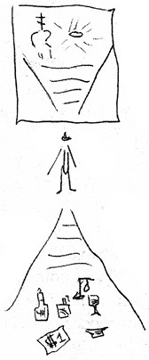 Во-вторых, обратная перспектива. На старых иконах всегда обратная перспектива: «рельсы» не убегают вдаль, а надвигаются на нас. Получается, что человек находится в центре: перед ним икона, предлагающая путь в бесконечно расширяющуюся Вечность; за ним такой же широкий путь к сластям этого мира. «Сласти» всегда завернуты в очень привлекательную бумажку. Развернул, – а там виселица.