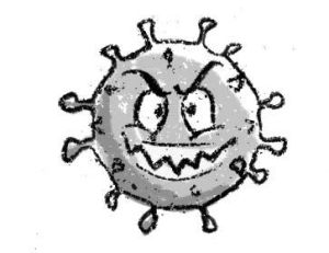 Потом я сделал то же самое со своим компьютером. И даже нарисовал на бумажке злого вируса. Он вышел похожим на нашего ежа.