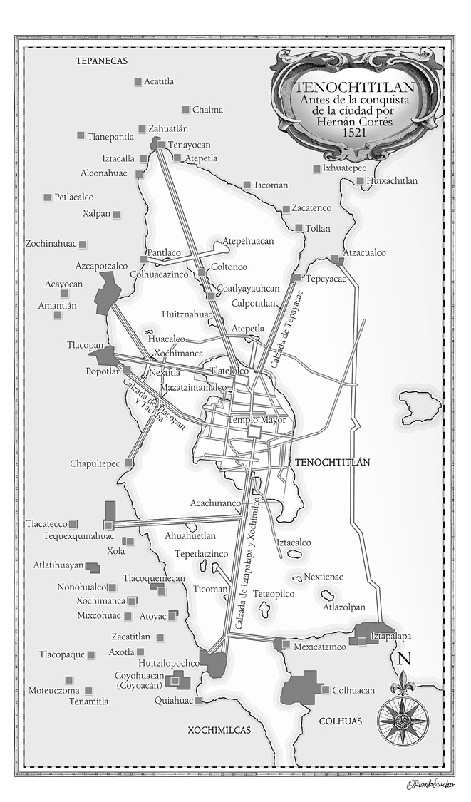 Casi involuntariamente, buscó, en el dibujo, las grandes casas flotantes de los teules representadas al fondo.