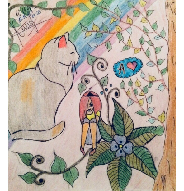 На одной из таких звезд ранним утром, когда только-только подкрадывались первые лучи озаряющего мир шара, цвела жизнь: множество лесов с причудливыми зверями и птицами, которых нигде нельзя более встретить, поля и луга, усеянные «маленькими солнышками» (ромашками), различные огромные деревья, имеющие вместо листьев рисунки с мечтами и настроениями юной девушки, реки – многоводные, но не глубокие, чтобы спокойно по ним шагать, чистейший воздух, исцеляющий любого, кто нуждается в помощи…