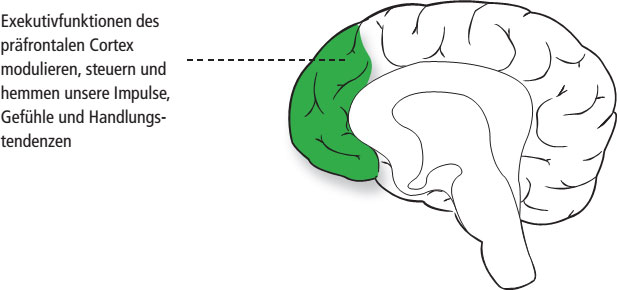 Sich bewusst zu steuern, ist eine wichtige menschliche Eigenschaft, die während der Entwicklung eines Kindes zum Erwachsenen immer besser ausgebildet wird. Sie wird neurowissenschaftlich Exekutivfunktion genannt. Dabei hemmen die jüngeren Hirnareale den Überschuss der anderen, von oben nach unten.