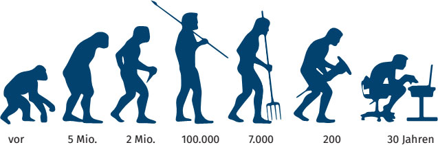 Mit Blick auf die Erdentstehung erscheint die gesamte Geschichte des Homo sapiens nur wie ein Blinzeln. Noch einmal dramatisch an Fahrt aufgenommen hat die Entwicklung seit der industriellen Revolution vor 200 Jahren. Und in den letzten 30 Jahren der digitalen Revolution wurde unsere Lebensart mit Computern, Internet und Smartphones noch einmal rasant umgekrempelt. Unsere Kinder können sich ein Leben ohne digitale Technik im Wohnzimmer und das Smartphone in der Hosentasche – mit Verbindung zur ganzen Welt – gar nicht mehr vorstellen.