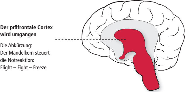 Die eigentliche Aufgabe des unteren Wegs im Gehirn ist die akute Notreaktion. Er ist wesentlich, wenn es schnell gehen muss und keine Zeit ist, alle Entscheidungen dem Chef da oben im Kopf vorzulegen.