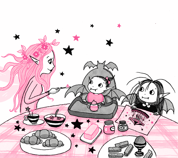 Я подошла к столу и принялась украшать торт, покрытый розовой глазурью, кондитерской посыпкой в виде летучих мышек и розовых звёздочек. Но одним глазком я всё-таки поглядывала в окно. Наконец я что-то заметила среди облаков.