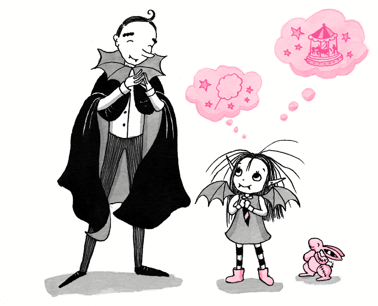 – А может, лучше посетим вампирскую ярмарку? – предложил папа. – Когда я был маленьким, с удовольствием ходил туда с друзьями! Все эти аттракционы с привидениями, тиры, замечательные призы и вкуснейший томатный сок!