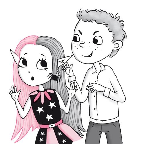 – Самой собой! – фыркнула Мирабель. – Я не… АЙ-АЙ-АЙ! – внезапно завопила она. За её спиной возник мой двоюродный брат Уилбур и бросил большущего паука прямо за ворот её платья. Мирабель подпрыгнула и завизжала.