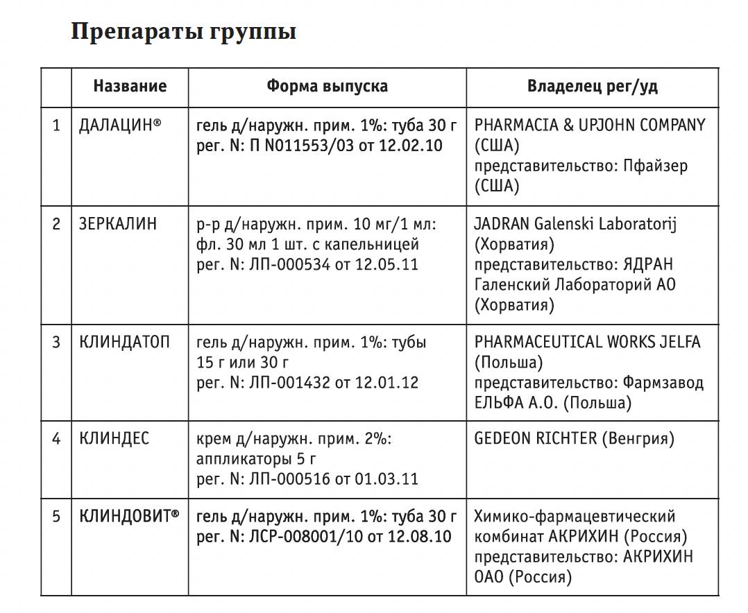 На первой строчке – препараты под МНН – клиндамицин, среди которых находится и ваш препарат. Спустившись на ступеньку глубже, вы видите конкурентов Далацина по МНН: