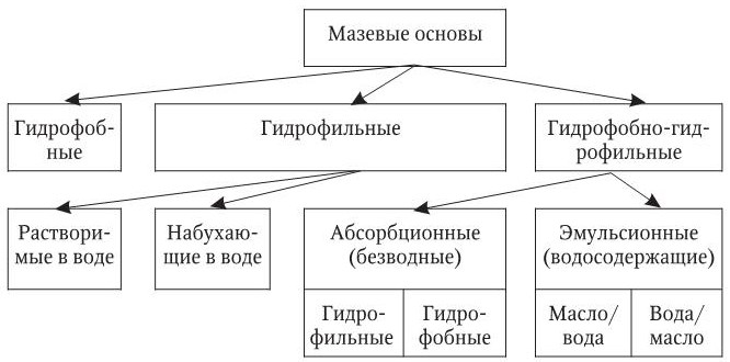 Рис. 3. Классификация мазевых основ по отношению к воде