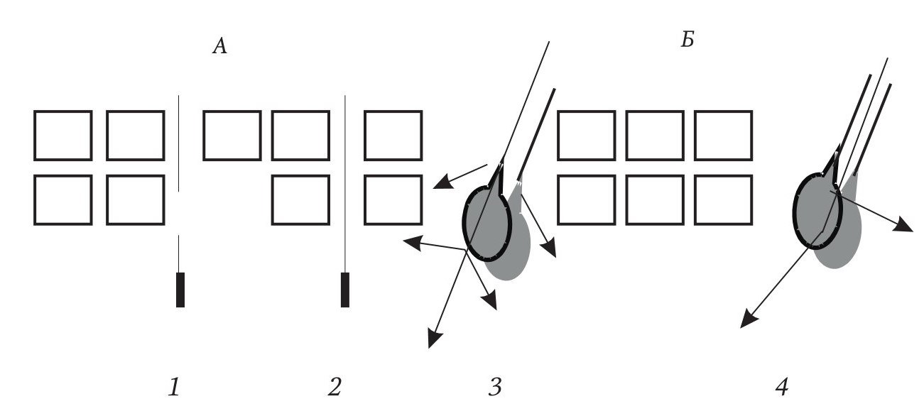 А – трансдермальный: 1 – межклеточный; 2 – трансцеллюлярный; Б – через поры: 3 – трансгладулярный (через стенки фолликул и протоки сальных и потовых желез); 4 – трансфолликулярный
