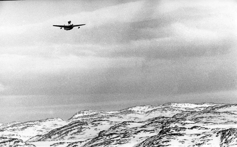 Так, вертясь под обстрелом врага над Ура-губой, я увидел костер с высоким столбом черного дыма – догорал наш самолет – и недалеко от него второй истребитель, уткнувшийся носом в пологий скат сопки. Гибель товарищей переполнила злостью, я вошел в такой азарт, что был готов бить фашистов чем попало: винтом, крылом, всем самолетом. Вспомнил про «катюши» – реактивные снаряды. Почему они не сработали? Улучив момент, я нагнулся. Быстро взглянул на левый борт, где была укреплена небольшая коробочка с вращающимся барабанчиком в центре. Так и есть! Барабанчик провернулся. Вмиг установил барабанчик на место. «Катюши» были готовы к действию. В таком воздушном бою я мало на них рассчитывал, но другого выхода не было… Вот свалился на меня один из «мессеров». Летчик начал обстрел. Я – за сопку. Снаряды и пули, кроша гранитную скалу, брызнули во все стороны. Изловчившись, послал «катюшу». Снаряд не попал, он разорвался впереди, но фашистский истребитель шарахнулся в сторону. Я расстрелял все «катюши». Ни одна из них не причинила фашистам вреда, но сбила их наступательный пыл. Бросив взгляд на приборную доску, увидел: кончается бензин. Еще десять – пятнадцать минут полета, и мне падать. Включил радио.