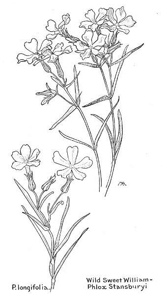 This is from eight inches to two feet high, with hairy, soft, dull green leaves and hairy stems, which are usually branching and spreading. The flowers are less than half an inch across, with a very hairy, sticky calyx, a violet corolla, varying in tint from dull white to bright blue, fading to purple, and purple filaments with whitish anthers. This grows in dry places and is common, often forming large clumps covered with flowers which are quite effective in color, though the plants are too straggling and hairy to be very attractive close by. P. ramosíssima is similar but coarser, the flowers are larger, and the plant is exceedingly hairy, the calyxes being covered with conspicuous, long, white hairs, and the whole plant unpleasant to touch.