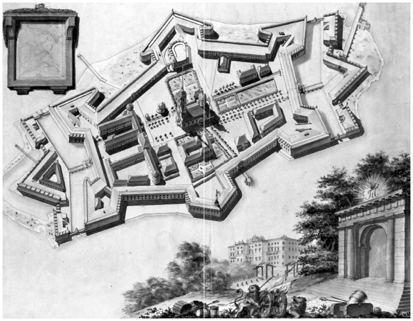 Аксонометрический план Петропавловской крепости, конец XVIII века.