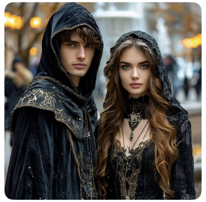 Тарель, пряча изумрудные глаза под капюшоном, держала за руку Марка. Его тёмные волосы развевались на ветру, выдавая его принадлежность к клану Ночи. Днем их видели лишь в отражениях витрин, крадучись меж тенями зданий.