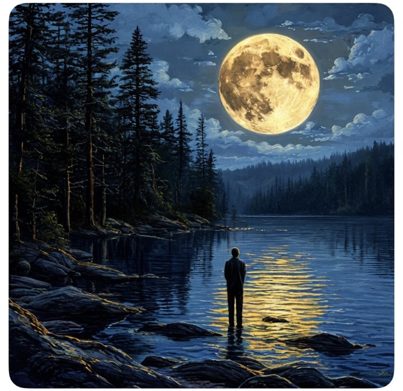 В центре стояла высокая фигура в чёрном, вознося руки к полной Луне.