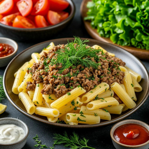 5) Remove the pasta from the heat and rinse them thoroughly in a colander, then add to the minced meat and mix.