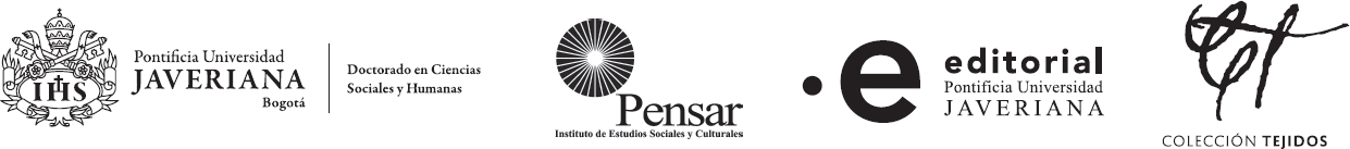 Al equipo humano de las vicerrectorías Académicas y de Investigación y, en especial, a sus vicerrectores Luis David Prieto y Luis Miguel Rengifo respectivamente por alentar el proceso. A Germán Mejía, decano de la Facultad de Ciencias Sociales, a Janneth Aldana, directora del Departamento de Sociología, y a Martha Márquez, directora del Instituto Pensar, por el apoyo decidido a dos de sus profesores-investigadores para realizar campo y dedicar tiempo para la escritura. A la actual directora del Doctorado en Ciencias Sociales Humanas, Amada Carolina Pérez, por acoger este proyecto editorial en el seno de la Colección Tejidos y al equipo de la Editorial Pontificia Universidad Javeriana, dirigida por Nicolás Morales, por hacer posible toda la artesanía de la publicación.