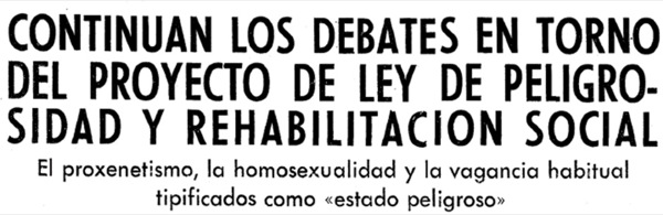 En este sentido, resulta increíble que una madre denuncie a su propio hijo ante la Guardia Civil para que le apliquen la pena impuesta por la Ley de Peligrosidad y Rehabilitación Social. Es el caso de Federico Armenteros, que más adelante relato.