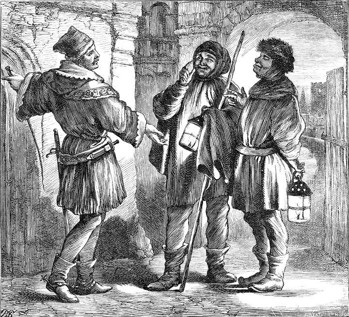 Гедсхил остается один и зовет трактирного слугу. Слуга, как выясняется из беседы, как раз и снабдил воров информацией, позволившей спланировать разбойное нападение. Проще говоря, этот человек – обыкновенный наводчик. Слуга подтверждает: дело обстоит именно так, как он и докладывал накануне. У землевладельца, который остановился в гостинице, имеется при себе триста марок золотом, а у его спутника, который «смахивает на аудитора», с собой «пропасть поклажи». То есть можно неплохо поживиться. Оба гостя уже встали, велели подавать завтрак, скоро тронутся в путь. Гедсхил радостно потирает руки, предвкушая успех, и обещает трактирному слуге оговоренную долю добычи. Типа современного «отката», по-видимому.