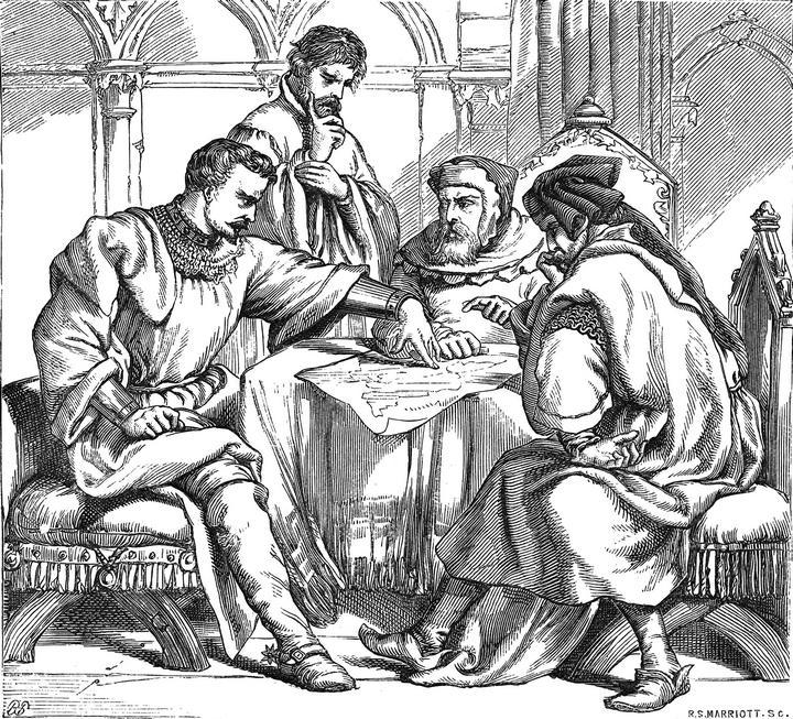 Так что там с претензиями к сыну на тему участия в заседаниях Совета? Начнем с того, что принц Генрих уже с 1400 года, когда ему было 13–14 лет, успешно участвовал в боях и стычках с мятежниками из Уэльса, ибо Оуайн Глиндур (Глендаур) начал показывать зубы английской короне отнюдь не в 1403 году, а несколько раньше. Как носитель титула принца Уэльского юный Генрих просто обязан был участвовать в наведении порядка на подконтрольной территории, что он и делал, причем весьма успешно. В 1406 году (то есть через три года после описываемых Шекспиром событий) ситуация в Уэльсе стабилизировалась, принц получил возможность вернуться в Англию, начал принимать участие в заседаниях Королевского совета (или просто Совета) и играть заметную роль в государственных делах. Иными словами, в 1403 году Генрих Монмут членом Совета не являлся и присутствовать на заседаниях обязан не был. Идем дальше. Король утверждает, что вместо него в Совете трудится младший брат принца Уэльского. Но кто именно? Томас, Джон или Хамфри? Шекспир обходит этот момент молчанием. Первое, что приходит на ум: речь идет о Джоне, потому что именно он в начале пьесы находится рядом с королем во дворце, когда Генрих Четвертый жалуется своим приближенным на старшего сына, принца Уэльского, ведущего разнузданную жизнь. Конечно, я понимаю, что в преддверии пьес о Генрихах Пятом и Шестом необходимо заранее подчеркнуть серьезность и ум Джона, будущего герцога Бедфорда, крупного военачальника и регента Франции. Но зачем же так топорно-то? Джон был на три года (по некоторым источникам – на два) младше Генриха, ему в 1403 году исполнилось всего 14 лет, для участия в Совете как-то рановато. Что же касается замены одного сына другим в составе Королевского совета, то это произошло и вовсе в январе 1412 года. Генрих Четвертый заменил старшего, принца Уэльского Генриха Монмута, на второго по старшинству сына, Томаса Кларенса (а совсем даже не на Джона, третьего по счету из выживших). Почему? Да потому, что принц Генрих вышел из доверия, более того, обнаглел настолько, что посоветовал отцу отречься от престола. К этому времени принц Уэльский уже играл видную роль в управлении государством. Так что от участия в Совете его отстранили по причинам, никак не связанным с неподобающе разгульным поведением.