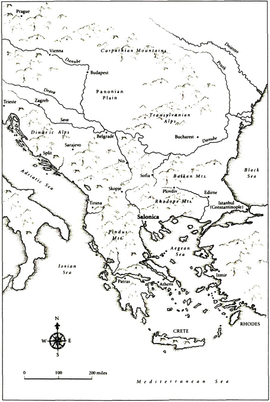 THE FIRST TIME I visited Salonica, one summer more than twenty years ago, I stepped off the Athens train, shouldered my rucksack, and left the station in search of the town. Down a petrol-choked road, I passed a string of seedy hotels, and arrived at a busy crossroads: beyond lay the city centre. The unremitting heat, and the din of the traffic reminded me of what I had left several hours away in Athens but despite this I knew I had been transported into another world. A mere hour or so to the north lay Tito’s Yugoslavia and the checkpoints at Gevgeli or Florina; to the east were the Rhodope forests barring the way to Bulgaria, the forgotten Muslim towns and villages of Thrace, and the border with Turkey. From the moment I crossed the hectic confusion of Vardar Square – ‘Piccadilly Circus’ for British soldiers in the First World War – ignoring the signposts that urged me out of the city in the direction of the Iron Curtain, I sensed the presence of a different Greece, less in thrall to an ancient past, more intimately linked to neighbouring peoples, languages and cultures.