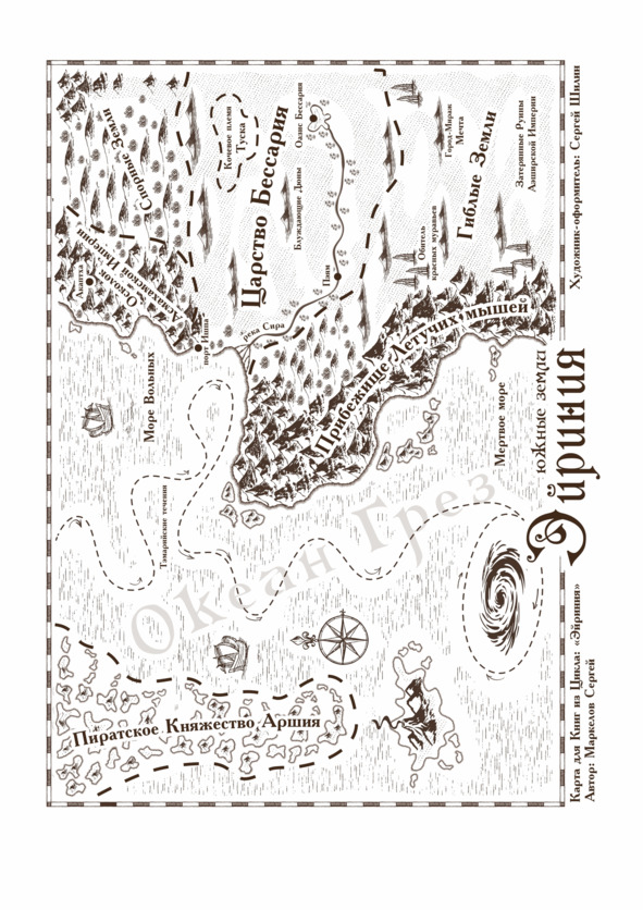 Эйриния – мирная и спокойная Страна, простирающая от берегов Океана Грез на западе, до Эфирского моря – на востоке, от Семарийский гор на севере и до южных Аэширских пустынь.