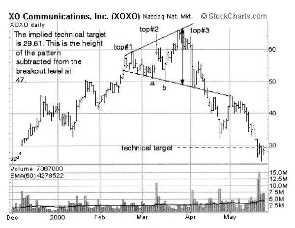 В силу того, что расширяющаяся вершина является очень масштабной разворотной фигурой, технические цели могут быть весьма значительными. При определении целевого уровня следует отнять высоту модели от значения окончательного прорыва (см. рисунок 1-16).