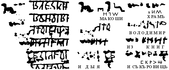 Опять-таки, если это был фальсификатор XVIII–XIX веков, который знал, что древние летописи уцелели прежде всего в Новгороде (кстати сказать, все нынешние исследователи полагают, что Велесова книга создана жрецами из Новгорода), то он, сочиняя штамп храма, поставил бы там в качестве места хранения Новгород, а не Владимир. Возможному фальсификатору вполне достаточно было изготовить один экслибрис. Между тем В. А. Чудинов обнаружил на той же дощечке и второй.