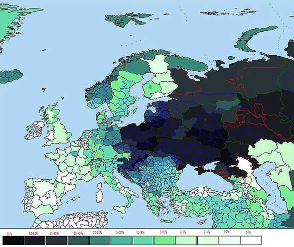 Для сравнения: частота встречаемости гаплогруппы R1a в процентах: