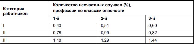 Первая графа таблицы – категория работников. К. Марбе иногда делил всех работников не на две, а на три категории: в первую он включал тех, у кого за изучаемый период (пятилетие) совсем не было несчастных случаев и происшествий; во вторую категорию – у кого было по одному; в третью – по два и более.