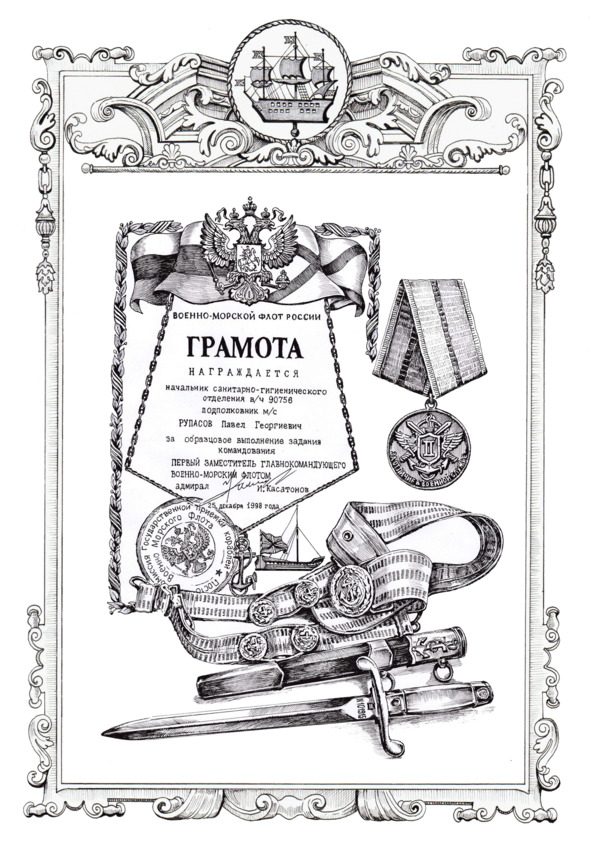 5. 2019, August – to the Head of the Medical Service of the High Command of the Russian Navy, Colonel of the Medical Service, Doctor of Medicine, Professor Mosyagin Igor Gennadievich, personally in hand;