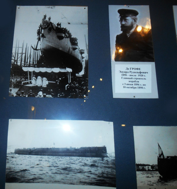 Поразила подпись под фото в левом верхнем углу на стенде, где под фото крейсера «Аскольд» (построен в Германии на верфи Круппа) стояла подпись, что это крейсер «Аврора» перед спуском.