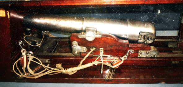 Были высланы книги «Исторический очерк развития наибольшего берегового калибра в России» (С-Петербург, 1889 г.), где находится описание этого орудия, и «Памятная книга для морских артиллеристов» (С-Петербург, 1872 г., там есть этот станок). После этого табличка была исправлена. Но это оказалось ненадолго.